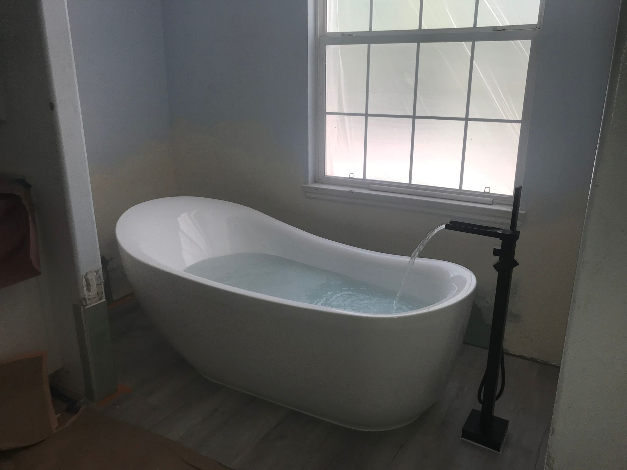 We assisted our client with their home remodeling project by installing a new freestanding bathtub.
