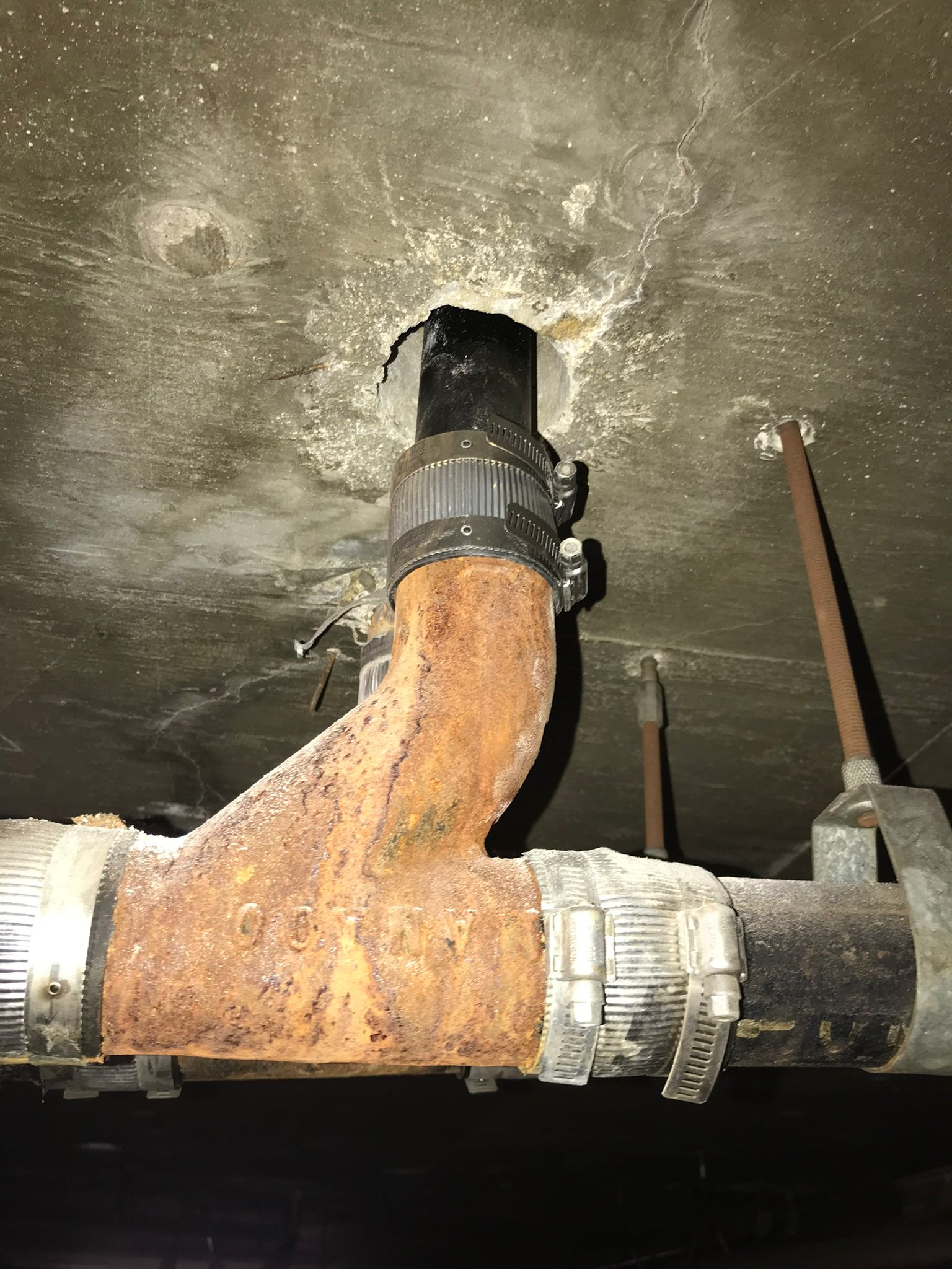 • A new 2-inch cast-iron pipe was installed and secured with special straps to ensure stability.