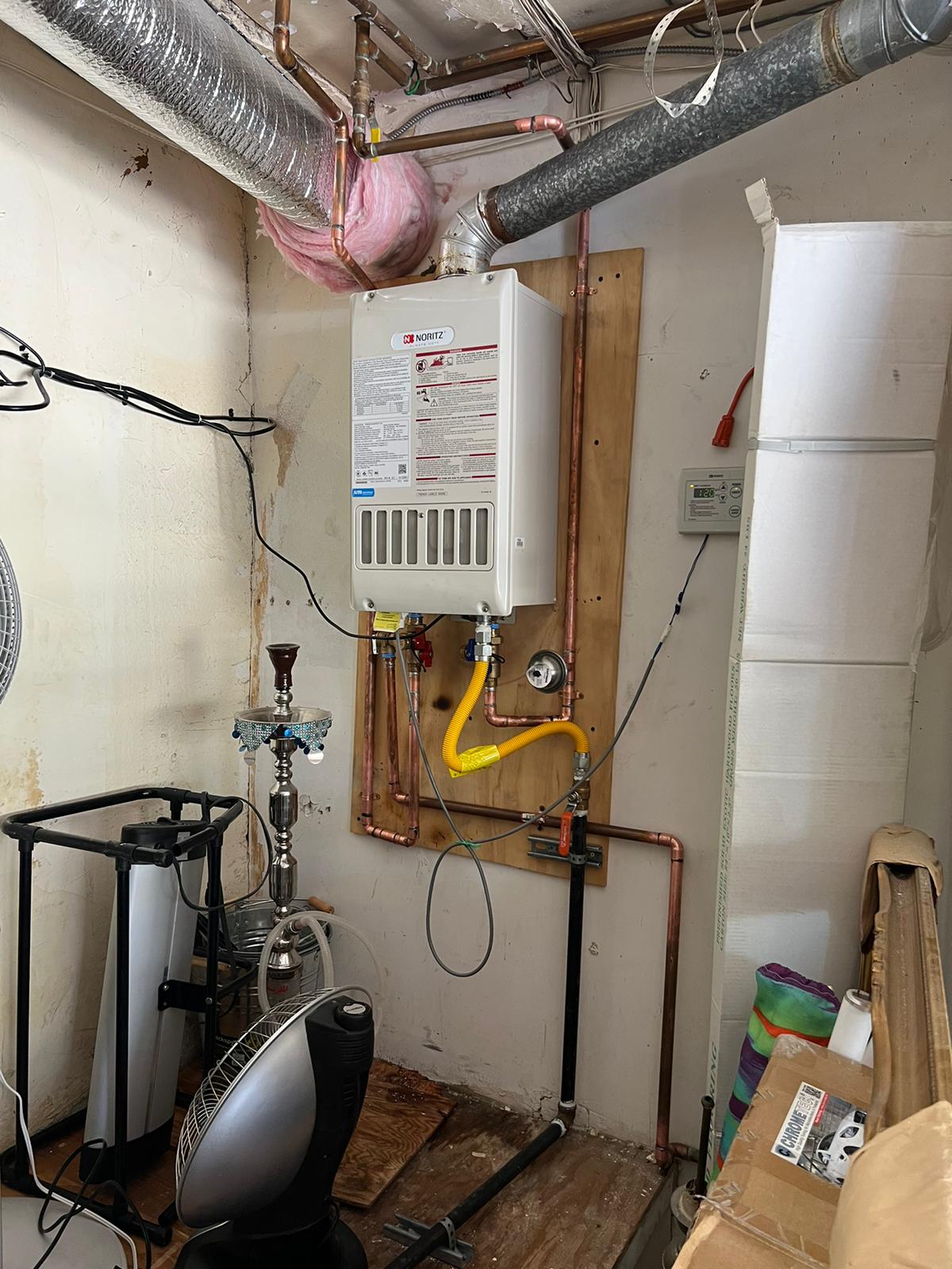 The installation of the tankless water heater was successfully completed within four hours. All system components were tested, and the unit was confirmed to be leak-free and functioning properly. The project was completed to the client’s satisfaction, with the work area left clean and orderly.