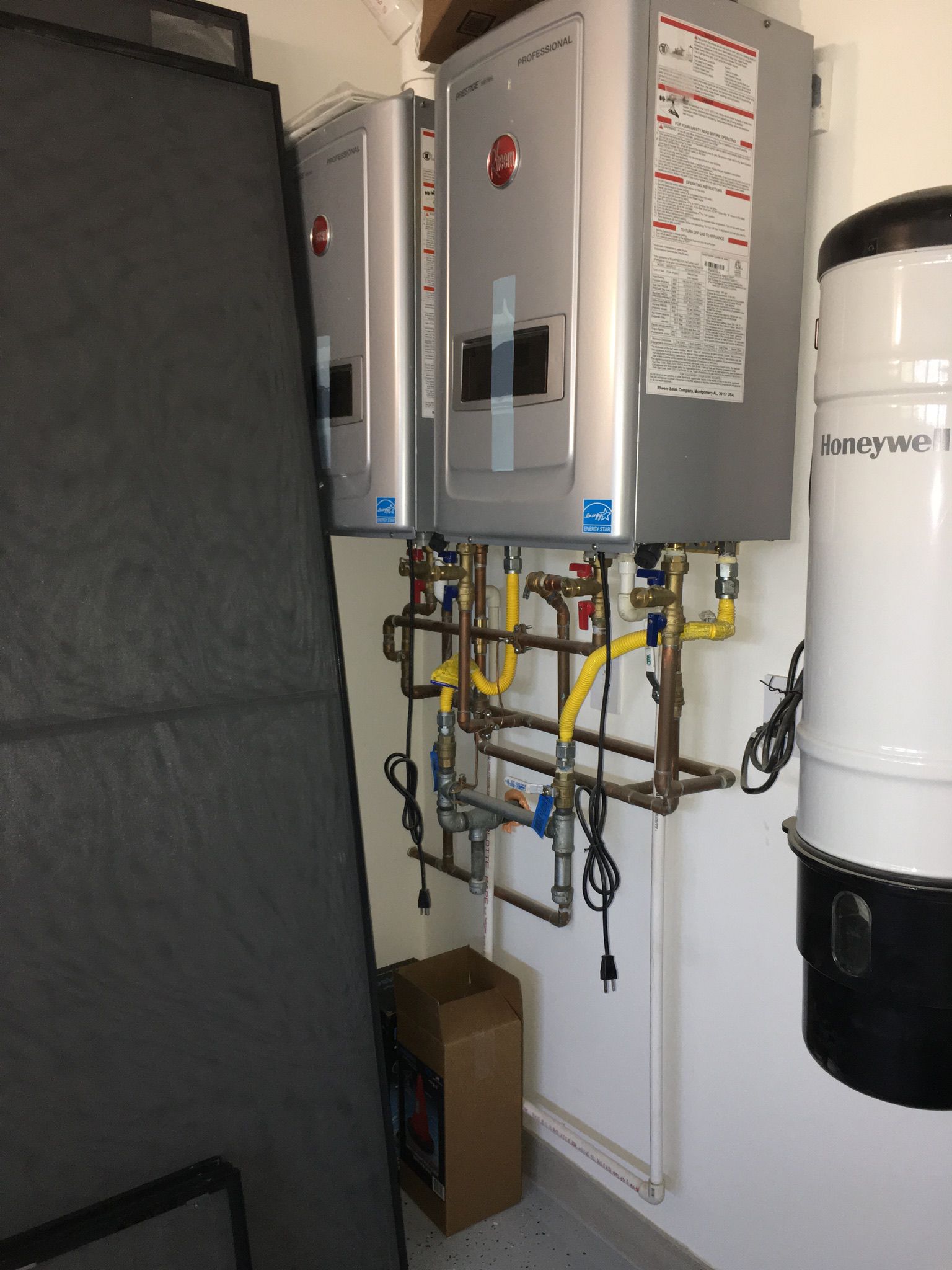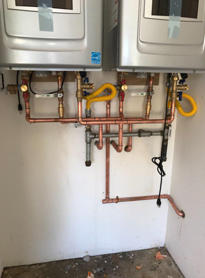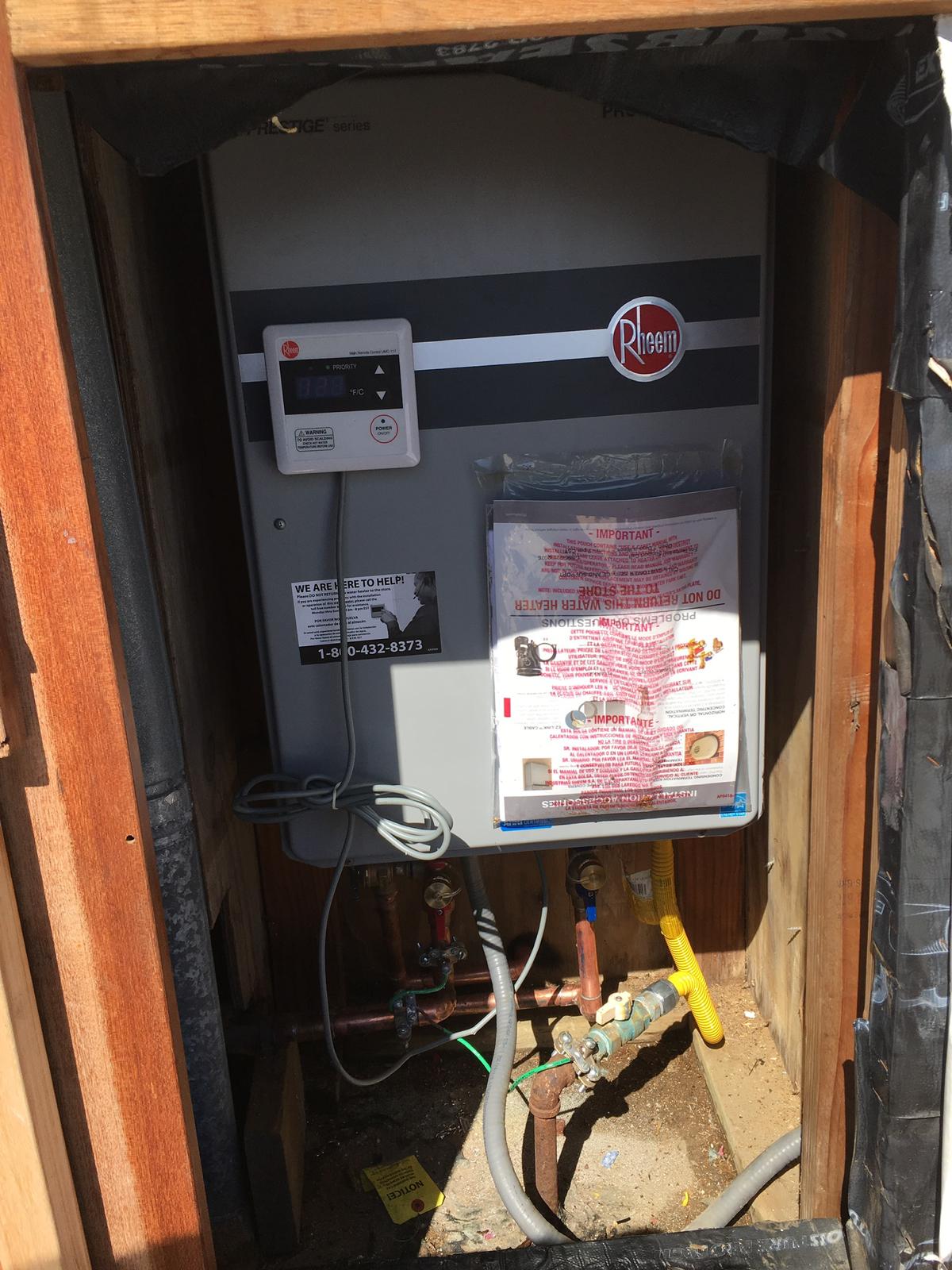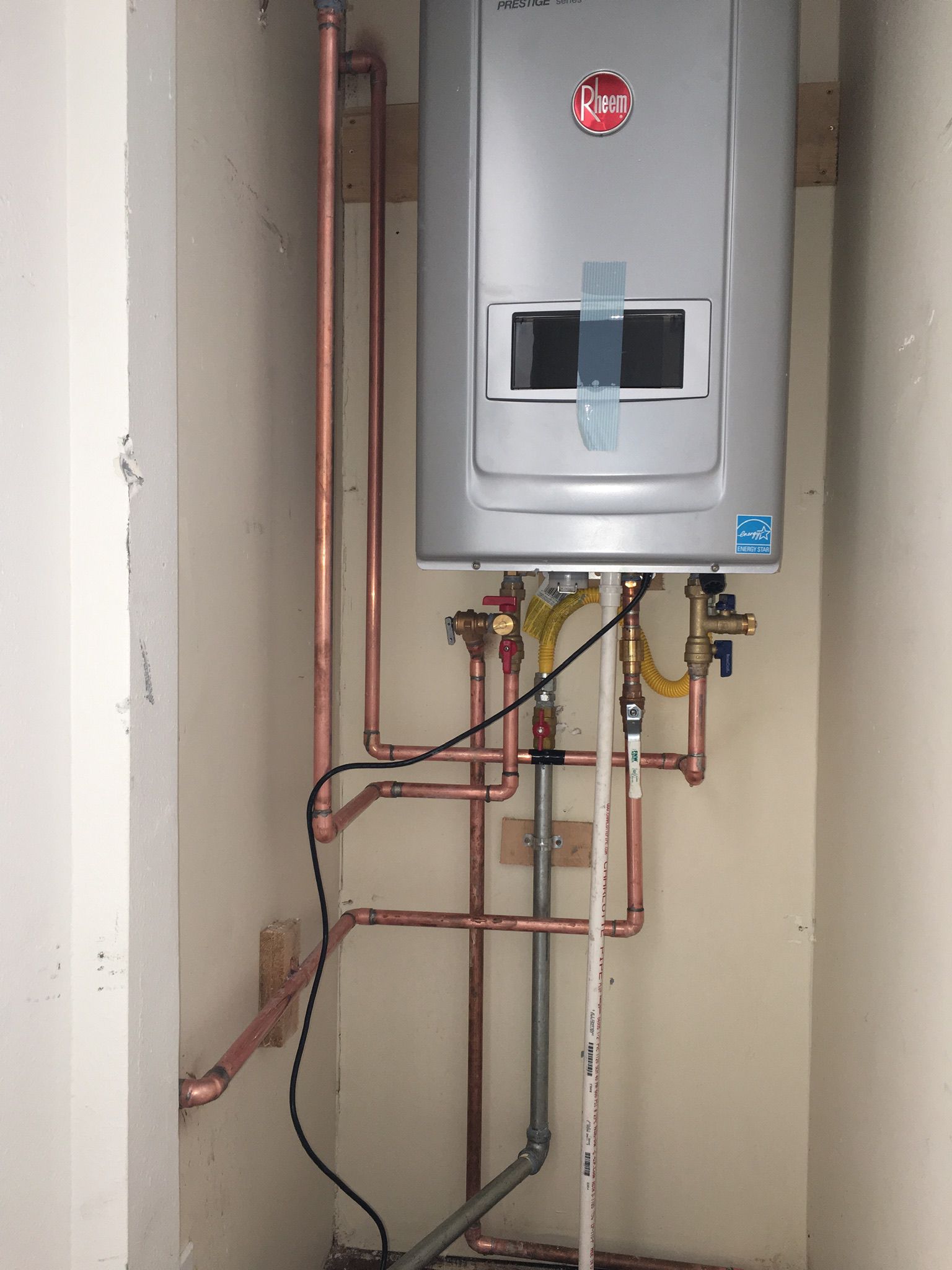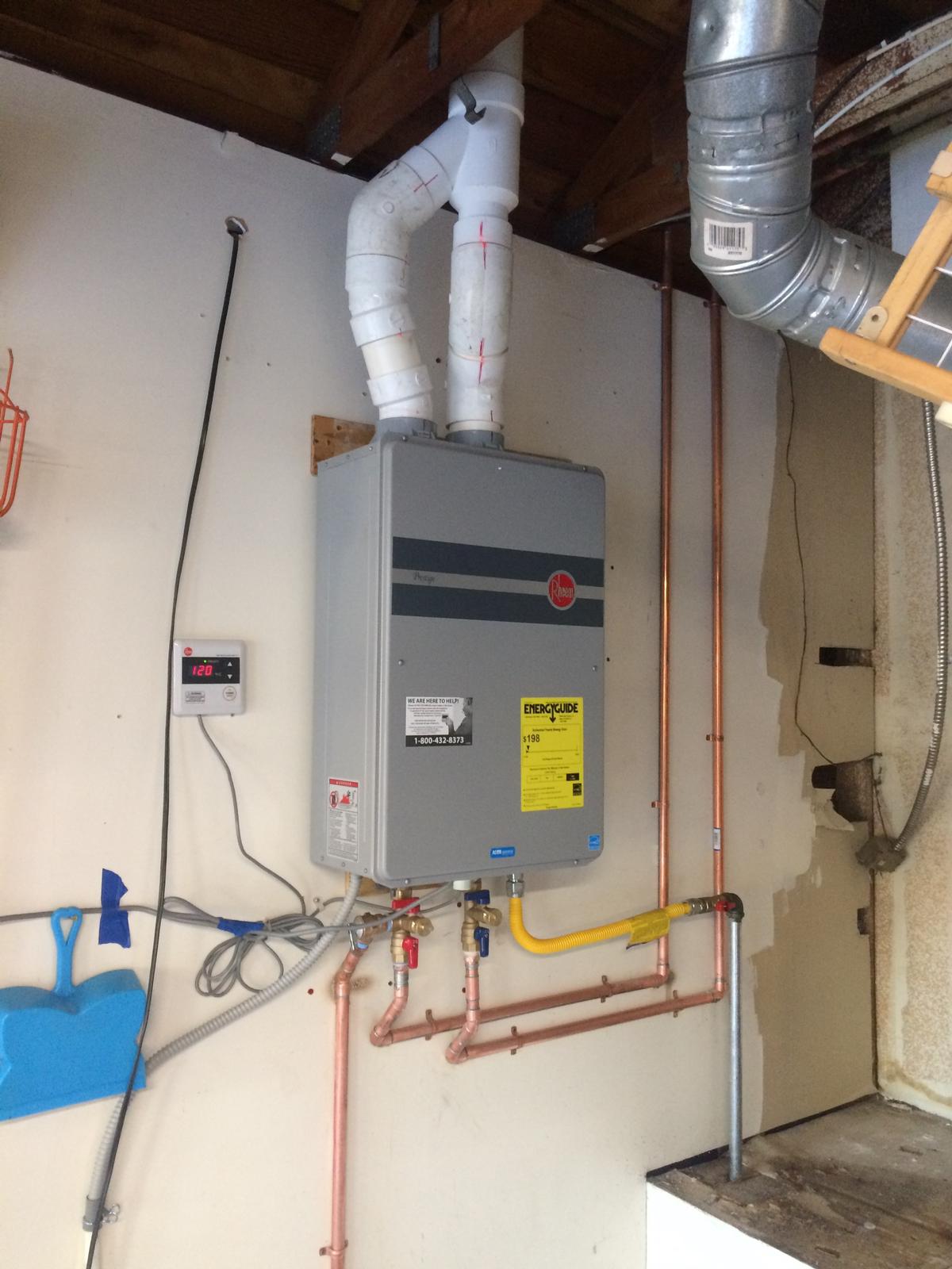- Installed the tankless water heater, including connections for the gas line, hot and cold water supply lines, circulation line, and venting system.